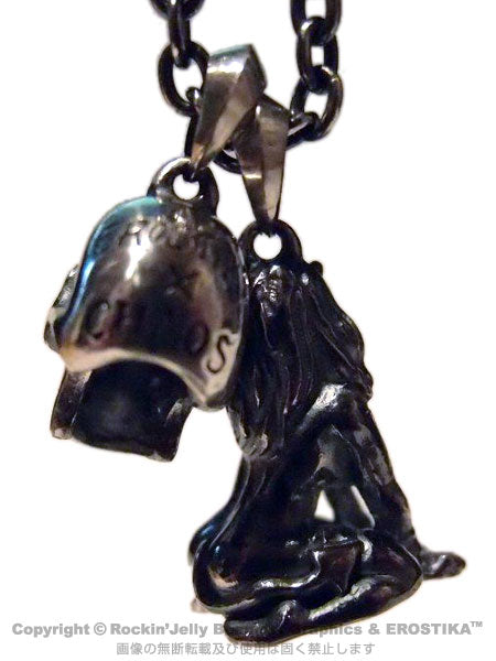 モチーフはEROSTIKA定番のスカルと女性で、これは屍であるスカルが「死」を、生命を生み出す女性が「生」を意味しています。二つのチャームに、ペンダント用チェーンが付属します。