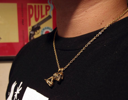 "EROSTIKA SKULL & GIRL" PENDANT TOP & CHAIN -Brass-