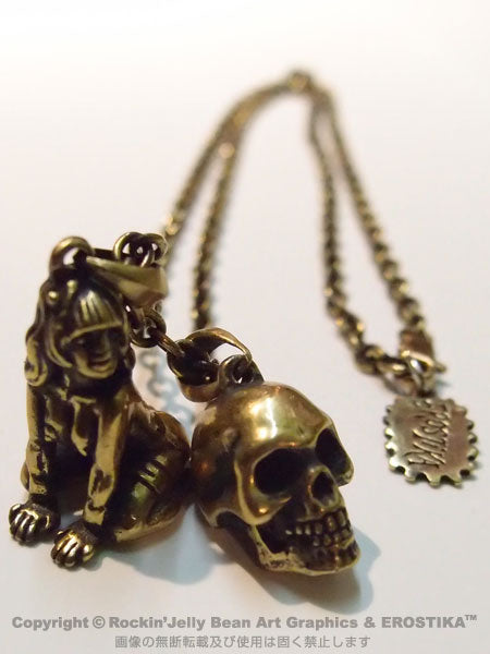 "EROSTIKA SKULL & GIRL" PENDANT TOP & CHAIN -Brass-